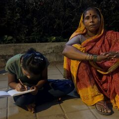 I captured this photo one late evening, on the footpaths of Mumbai. The woman in the picture had worked menial jobs all day, just to provide a little bit more for her daughter. The battered slippers and tired eyes hold testimony to the countless hours she spent trying to earn money to provide for her family. In the upsetting reality of her life in poverty, this woman pours her heart and soul into work every day, pushing herself to the limit to earn as much as she can. Yet, as dusk settles and exhaustion weighs heavy on her tired shoulders, she finds herself sitting on the street, waiting in silent anticipation for a ride home. However, in her bleak and dull world, her daughter acts as a ray of sunshine. With her strong will to receive an education despite her circumstances, the child acts as a glimmer of hope in her mother's otherwise hopeless world. In her pursuit of knowledge, she not only hopes to carve out a better future for herself but also to ameliorate her family from the shadows of despair. She embodies a spirit of defiance against adversity, striving to make a name for herself.